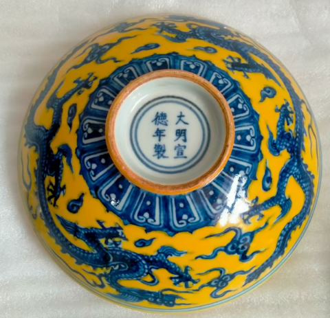 造型如半绽荷叶,烧制难度极高,鱼藻纹十棱碗被誉为"宣德碗之王"1。