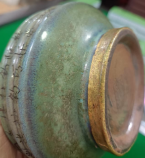 釉色与釉质:天青、月白或玫瑰紫等釉色,釉层肥厚莹润,釉面常带"蚯蚓走泥纹"开片,体现自然窑变之美;口沿处因釉薄呈现浅褐色"灯草边",底足露胎部分呈铁褐色("紫口铁足")68。