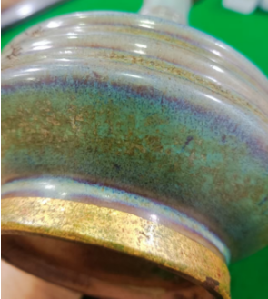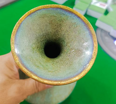 弦纹装饰:弦纹多位于口沿或颈部,以凸起线条增加层次感,但这与龙泉窑竹节瓶的多段弦纹(模拟竹节)不同;钧窑弦纹更注重釉色与纹路的和谐,而非刻意塑造竹节形态
