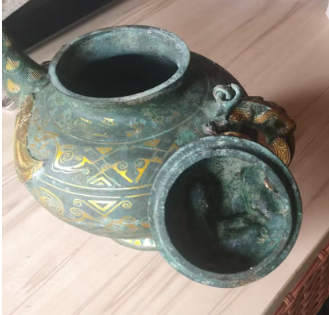 凤身铜壶是中国古代铜器中的一种特色造型,其壶身设计以凤鸟为主题,融合了动物形态与实用功能,体现了古代工匠的精湛技艺和文化象征。凤鸟作为祥瑞符号,常象征高贵与和平,此类壶多见于贵族或皇家用具中,尤其在唐宋及明清时期盛行。14 凤身铜壶的壶口多塑造成凤首,壶身为流畅的凤身形线条,壶尾则化为卷曲尾羽,整体造型华美而灵动,兼具艺术与实用价值。15不同朝代的设计各有特色:唐代壶体多运用鎏金与炸珠工艺,展现中西交融的风格;清代则强调龙凤组合,寓意皇权尊贵;明清时期的壶身纹饰更趋繁复,常辅以铭文印章