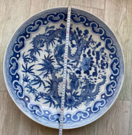 明代官窑器型规整饱满(如万历盘虽微瓢仍显厚重),釉面莹润呈漫反射光,老器常带自然磨损或水沁痕12。新仿品则釉光刺眼(“贼光”),盘沿缺少加厚唇边23。