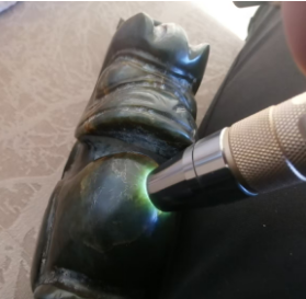 材质与沁色:多选用岫岩软玉(如透闪石玉),常见黄绿、青绿或白色;表面因年代久远产生自然沁色(如灰褐、土黄交织),光气内敛,呈现高古玉独有的熟坑质感2、3。背部通常有一对钻孔(孔壁可见螺旋纹),用于系绳佩戴
