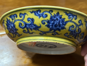 黄地青花缠枝莲纹盘