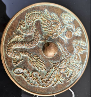 综上所述,龙凤呈祥铜镜作为雍正时期的佼佼者,以其独特的造型、精美的图案和精湛的工艺赢得了世人的赞誉和青睐。它不仅是中国古代青铜艺术的杰出代表,更是中华民族传统文化的重要载体。在欣赏这件艺术品的同时,我们也应该更加珍视和传承这份宝贵的文化遗产,让它在新的时代背景下焕发出更加璀璨的光芒。