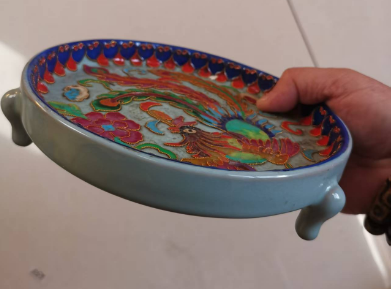 宋汝窑掐丝珐琅彩凤纹三足洗