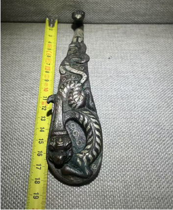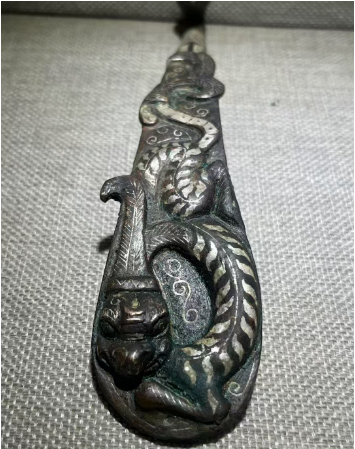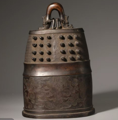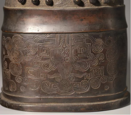 清代 龙钮乳钉饕餮纹铜钟+龙钮乳钉饕餮纹铜钟+清代铜炉+代勾