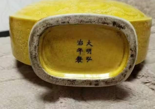 明弘治款娇黄釉刻花龙凤纹抱月瓶