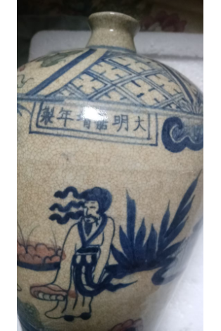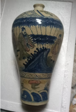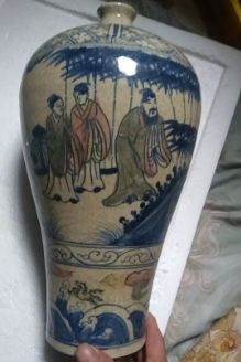 明嘉庆,青花粉彩人物梅瓶,竹林七杰