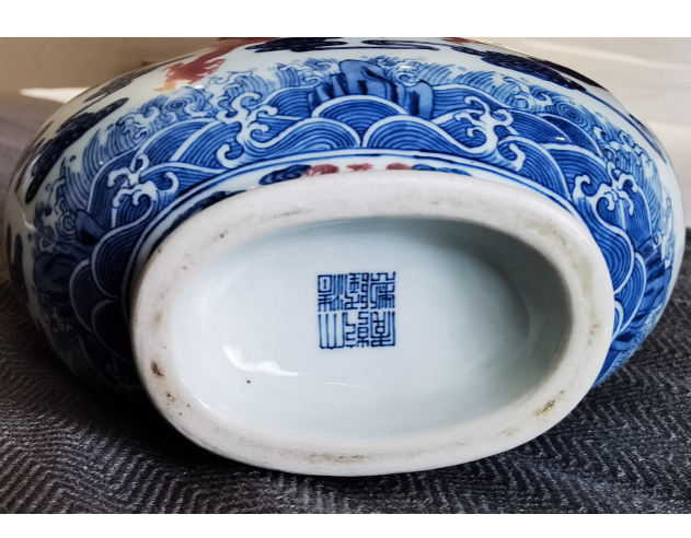 青花好海水龙穿云抱月瓶