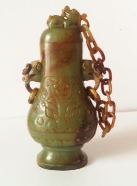 和田青玉扁壶:高17cm,重405克