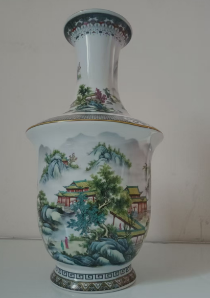 大清乾隆粉彩山水图纹瓶