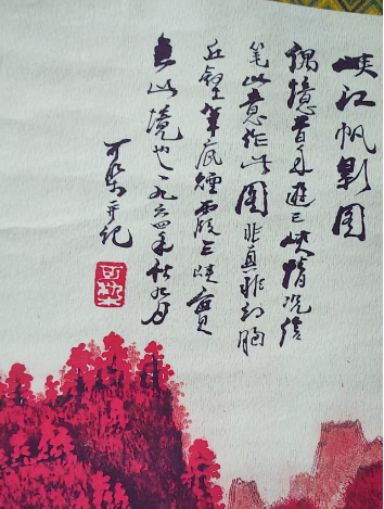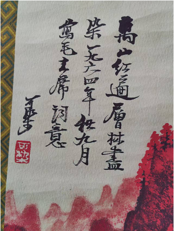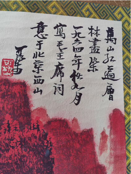 作者与风格:李可是中国近现代山水画大师,其“万山红遍”系列以浓烈的朱砂红描绘山林,开创了独特的红色山水风格,画面充满雄浑壮阔的气势与强烈的视觉冲击力。 • 画面元素:四条屏分别展现了红遍的山峦、瀑布、溪流、村落等元素,以红色为主色调,通过水墨的浓淡变化表现出山林的层次与空间感,搭配题字与印章,尽显传统国画的韵味。 • 文化与寓意:“万山红遍”源自毛泽东诗词,寓意着蓬勃的生机与红火的气象,常被用于家居、办公场所的装饰,既具艺术欣赏价值,也承载着对生活红红火火的美好期许。