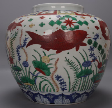 五彩鱼藻纹罐