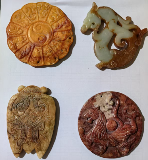 古玉白虎纹玉牌,古斧型兽面纹玉饰,古玉龙佩,古太极瑞兽纹玉