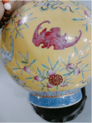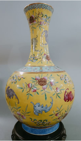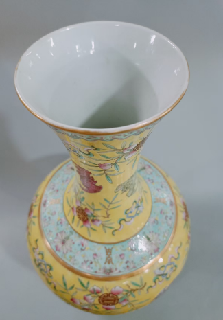 光绪黄地粉彩福寿纹赏瓶
