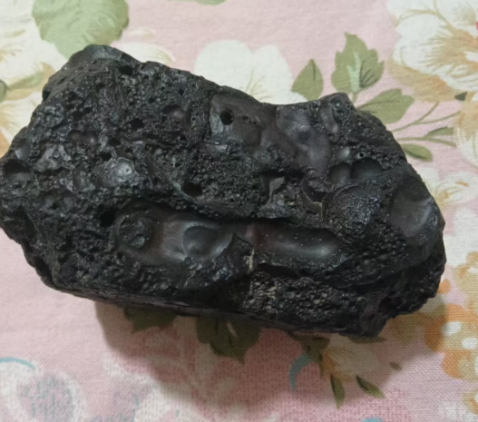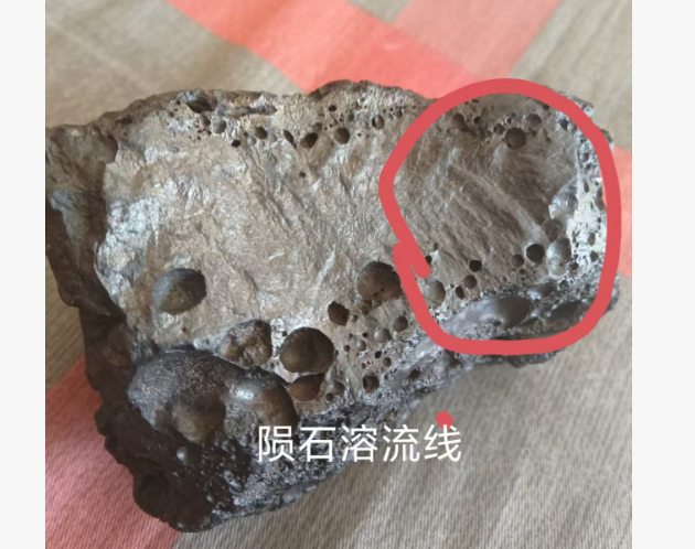 稀有陨石,陨石内部含有钻石成分,钻石发出的光芒四射,图片1可以看的到,表面有白色金属,溶流线清晰,密度四克,微磁,重量525克