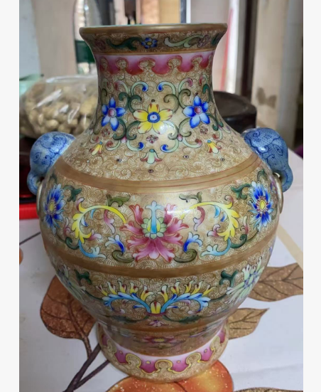 乾隆珐琅彩描金缠枝花卉象耳尊