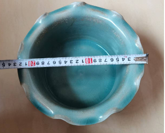 北宋。天青釉。花口山足炉子