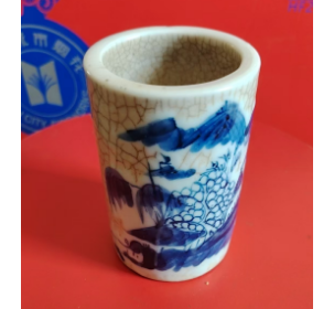 全品-元青花一对小茶碗。全品元代釉里红鱼藻纹鸟食罐+元青花小茶碗