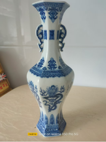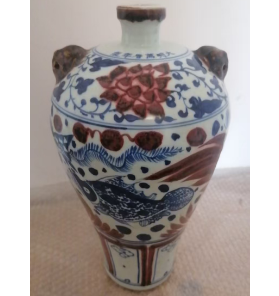 明代仿元代青花二牡丹缠枝双兽耳双龙大觀款式,,大元国至正八年制/。