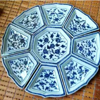 清青花缠板莲牡丹纹组合套盘