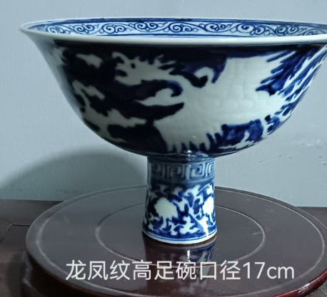 宣德青花白龙凤纹高足碗