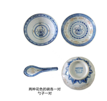 两种花色的碗各一对勺子一对