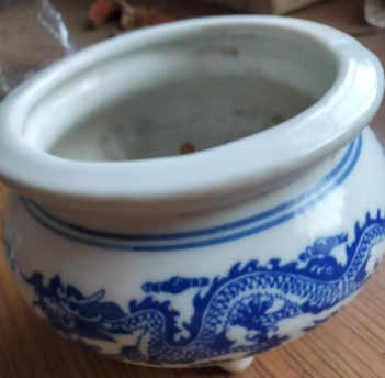 青花龙纹三足瓷炉