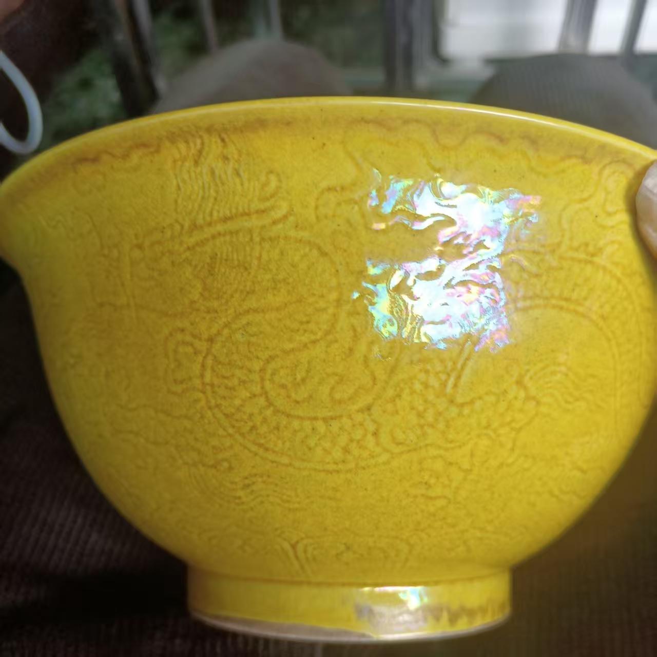 弘治黄釉暗刻龙纹碗