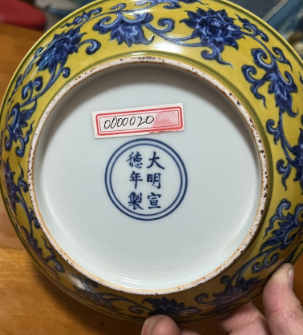 黄地青花缠枝莲纹盘