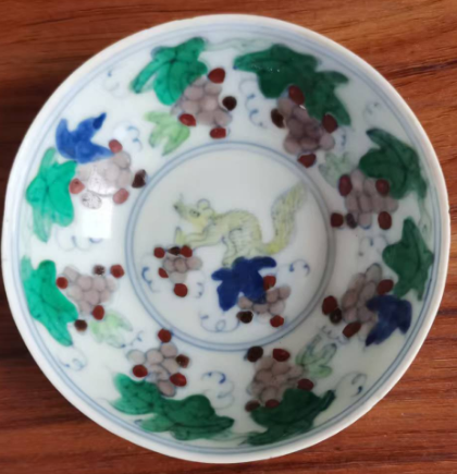 成化逗彩松鼠葡萄纹碟杯