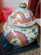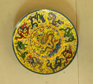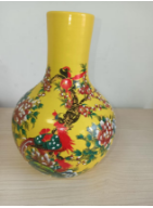 大清雍正年制双凤戏牡丹黄釉天球瓶