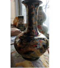清花双圆圈大清康熙年制款烏金釉沥金三龙纹天球尊瓶