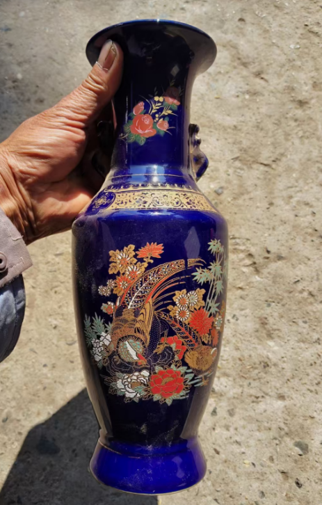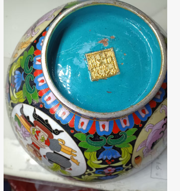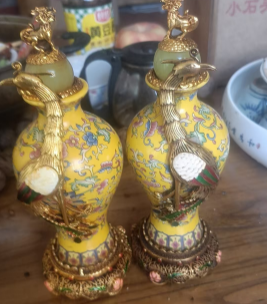 清乾隆风格的景泰蓝包金黄地粉彩花鸟赏瓶