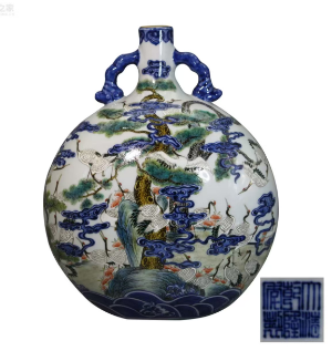 清乾隆青花松鹤纹双龙耳描金抱月瓶