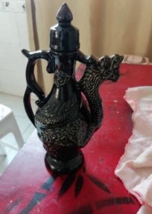 黑采由龙纹壶