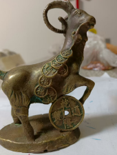乾隆通宝福寿榴金铜羊摆件