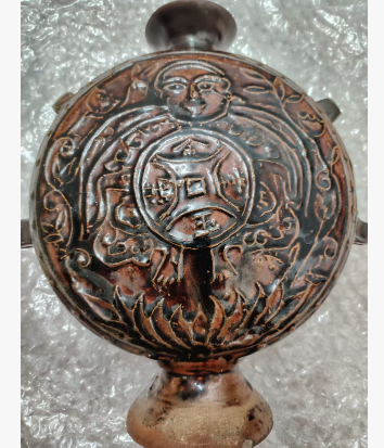 酱秞刻人物扁壶