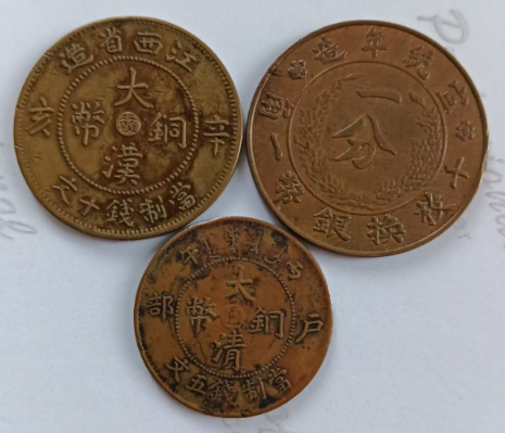 大清铜币户部五文+大清宣统年造1分+大汉铜币江西造