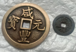 咸丰元宝宝矾局當千+崇祯通宝背右二