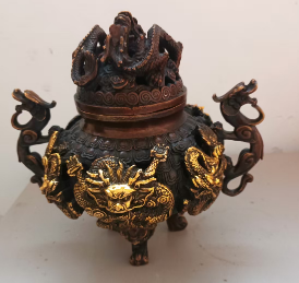 乾隆畄金九龙铜香炉